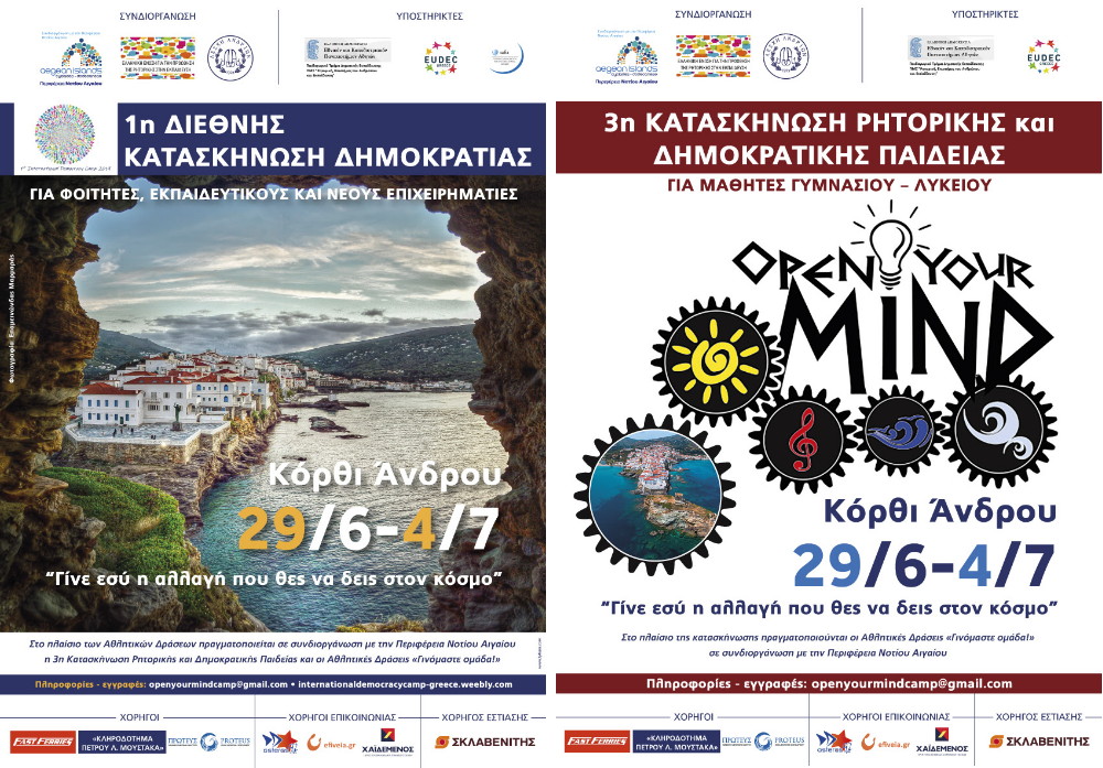 Οι κατασκηνώσεις αποτελούν συνδιοργάνωση της «Λέσχης Ανδρίων» και της «Ελληνικής Ένωσης για την Προώθηση της Ρητορικής στην Εκπαίδευση» Η Είσοδος είναι ελεύθερη.