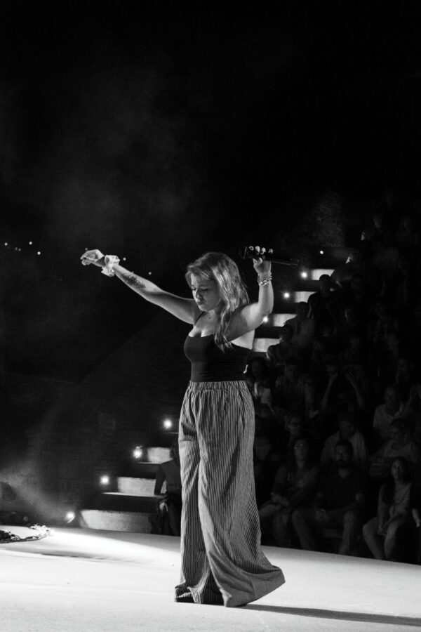 Με τη δύναμη της φωνής της, τη ζεστή παρουσία και τη βαθιά λαϊκή φωνή της, είπε τραγούδια που συγκινούν και ξεσηκώνουν. Η μπάντα που την συνοδεύει με εκφραστικότητα δημιούργησε την αίσθηση της γιορτής, της μουσικής και της παρέας. Το 11° Διεθνές Φεστιβάλ Άνδρου 2025 σήμανε τη λήξη του όπως του άξιζε: με ένα τεράστιο μοναδικό γλέντι!